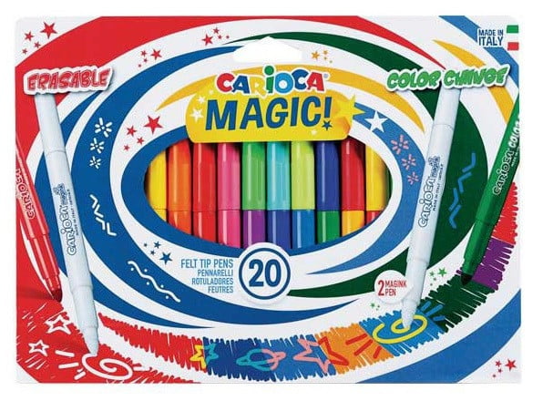 Marcador Carioca Mágic, con tinta mágica que cambia de color.